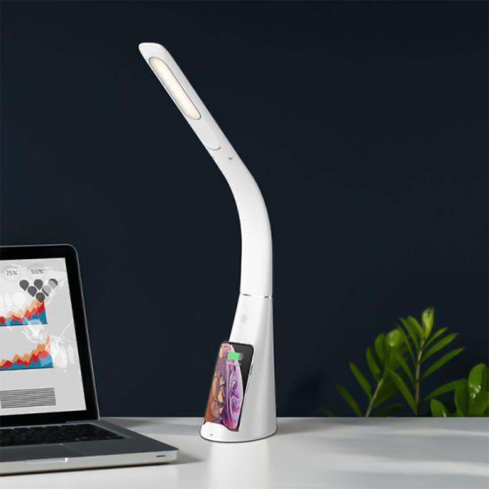 مصباح مكتب يقدم إضاءة واضحة مع خاصية التعقيم، مما يجعله مثالياً لمكان العمل أو الدراسة. تصميمه العملي يشمل شاحن لاسلكي للهاتف ورأس مرن لضبط الإضاءة حسب الحاجة، مع ثلاث أوضاع مختلفة تناسب جميع الأوقات.